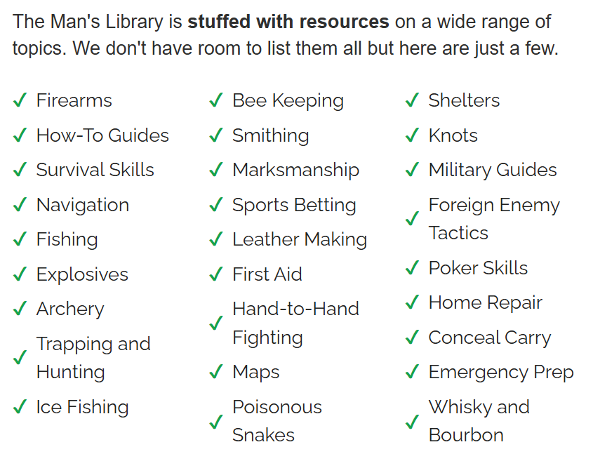 In short, The Man's Library is more than just survival prep. It also teaches social skills for success in all life areas.